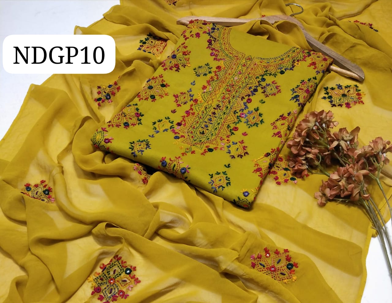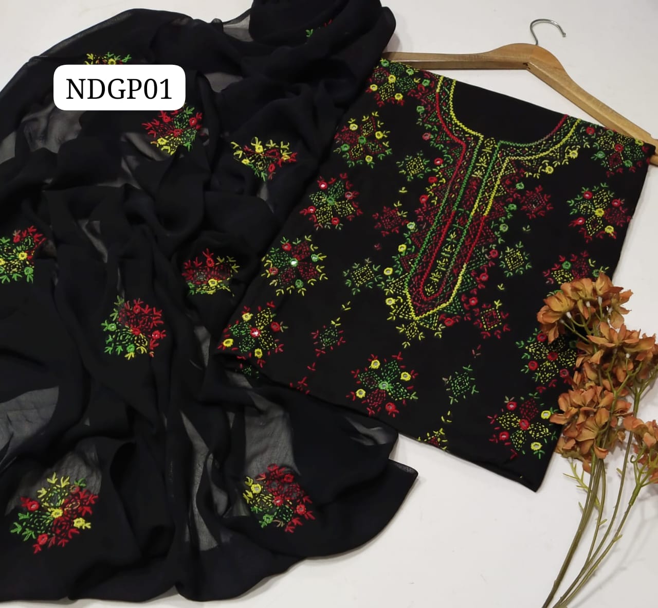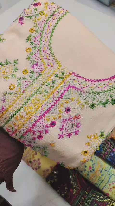Stuff lawn 100/100 handamde Afghani Gala jaal Style Neat WOrk Shirt And Plain Trouser WIth Chiffon EMbroidery Dupatta 3PC Dress
