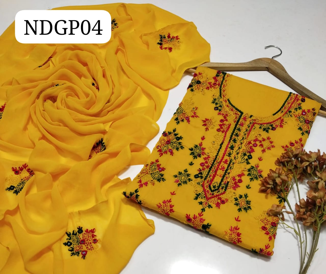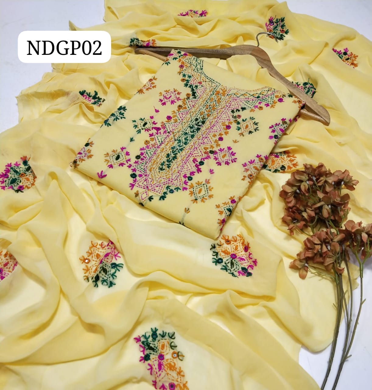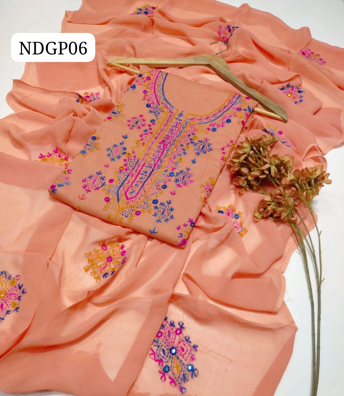 Stuff lawn 100/100 handamde Afghani Gala jaal Style Neat WOrk Shirt And Plain Trouser WIth Chiffon EMbroidery Dupatta 3PC Dress