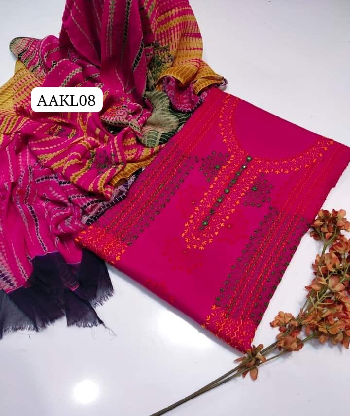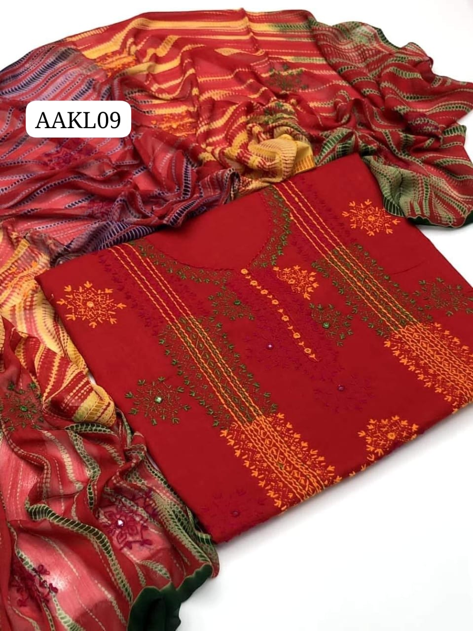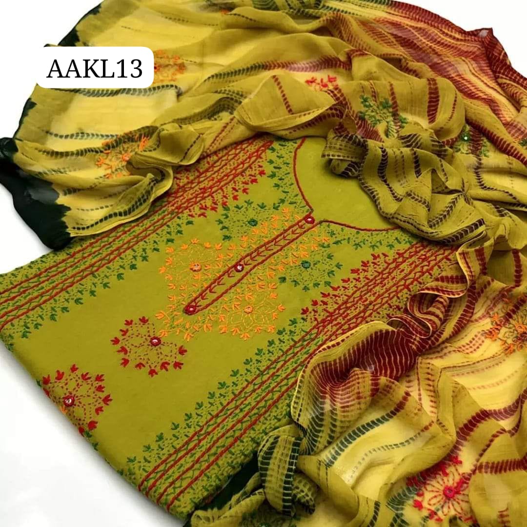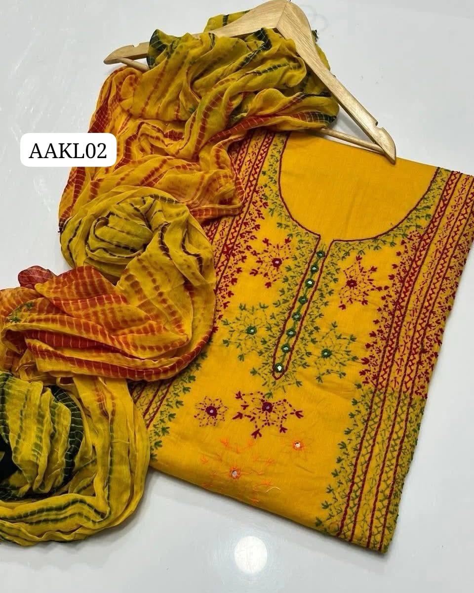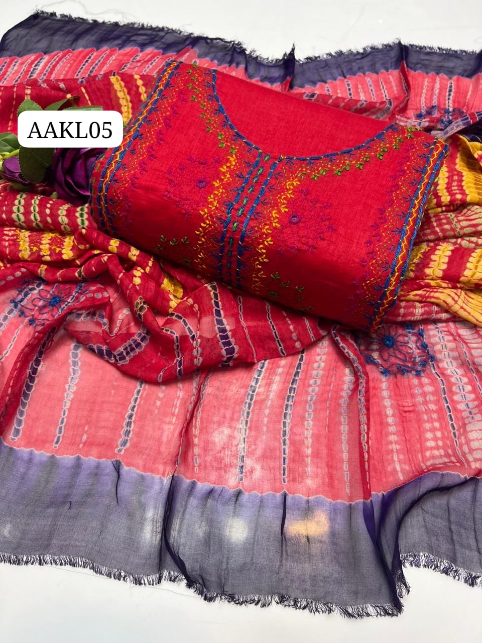 Stuff Lawn afghani Miror handmade All Over Embroidery Shirt And Chiffon Tye And Dye Embroidery Dupatta With Lawn Trouser 3PC Dress