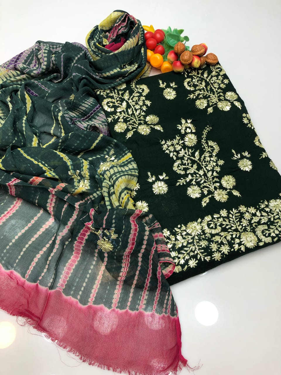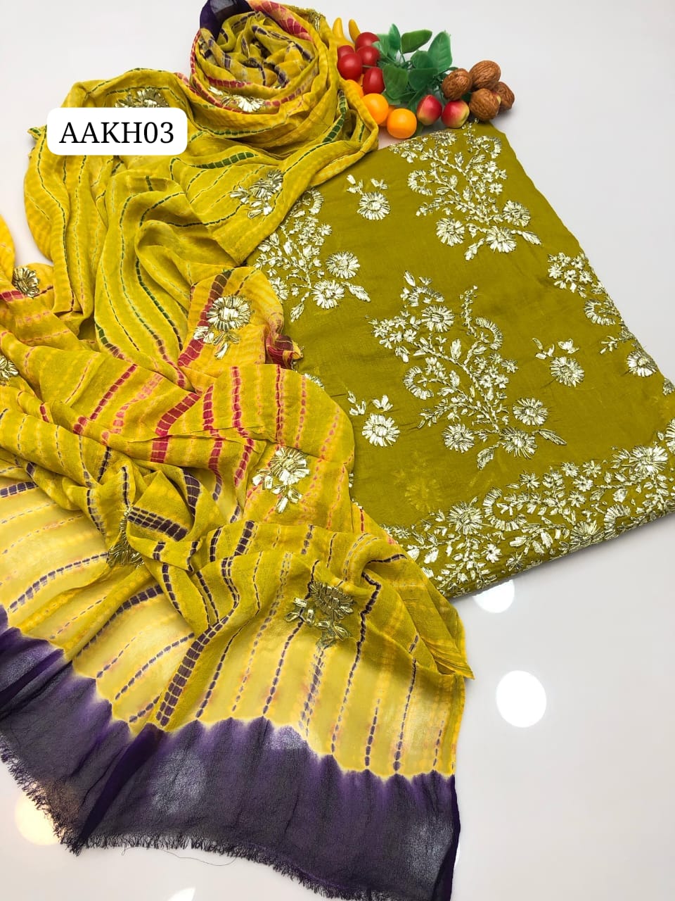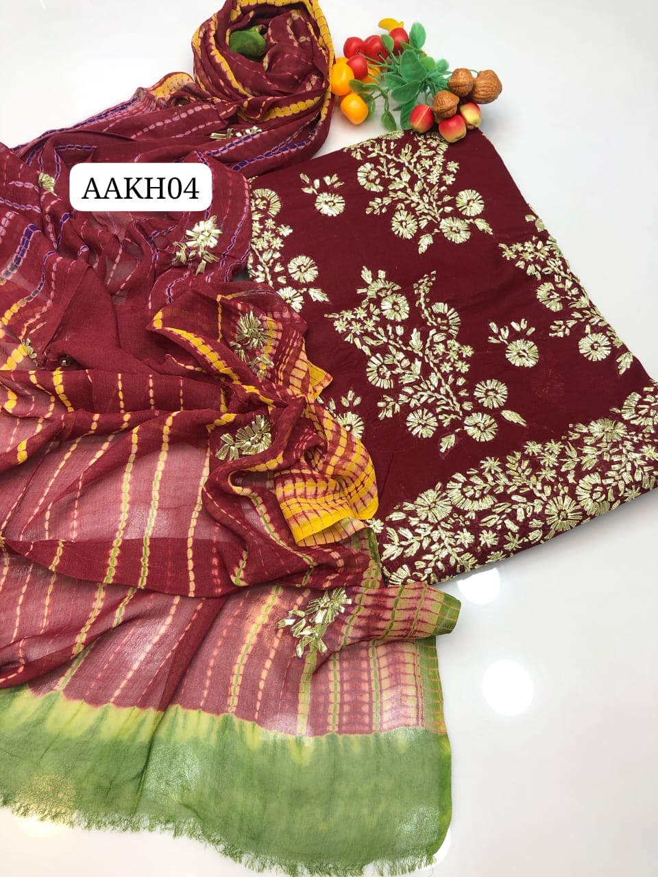 Stuff Lawn Fancy Daman Gotta All Over Shirt And Plain Trouser With Spanish Tye And Dye Embroidery Dupatta 3PC Dress