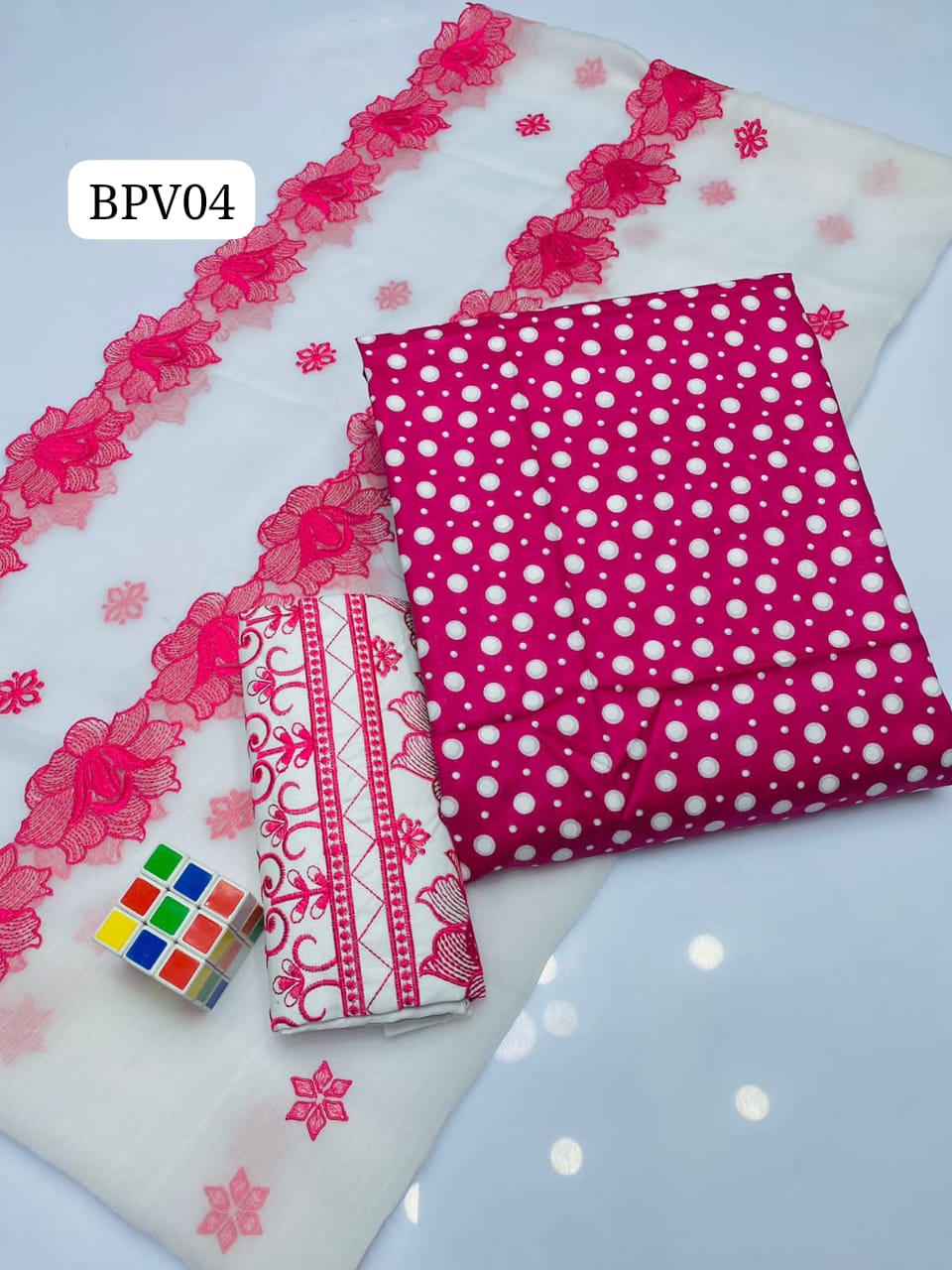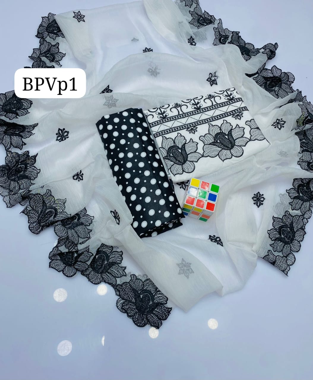 3 Meter Shirt (Lawn)2.5 Meter Dupatta (Chifon)2.5 Meter Trouser (lawn)