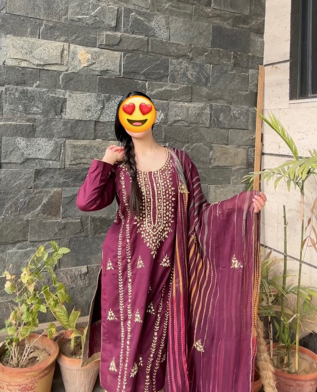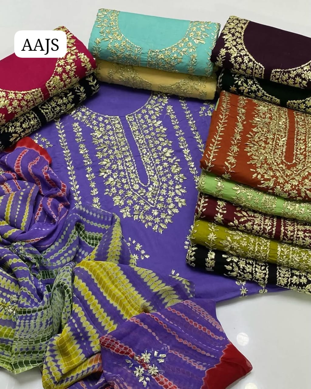 _ ALHAMDULILAH _ Stuff Lawn  LCD Gotta Panel Embroidery Shirt And Chifon LCD Gotta WPrk Dupatta With Plain Trouser 3PC Dress 3 Meter Shirt (Lawn)2.5 Meter Trouser (Lawn)2.5 Meter Dupatta (Chiffon)