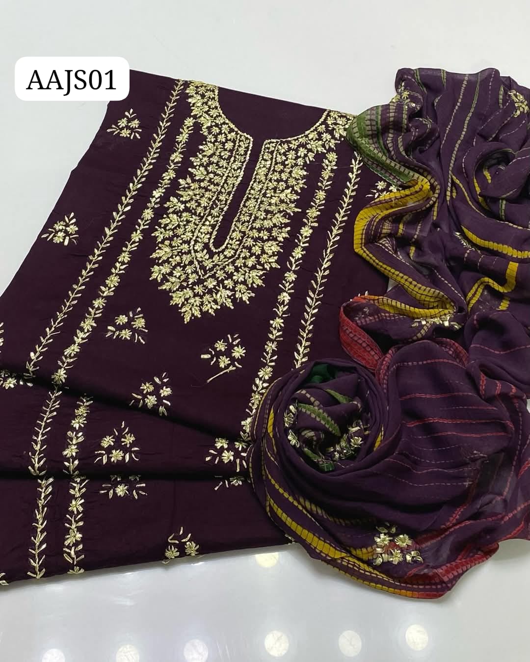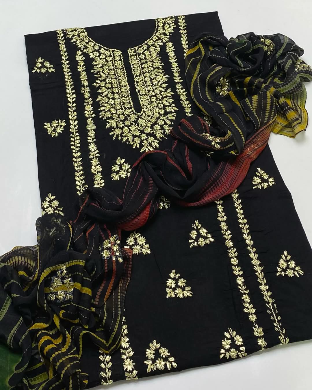 Stuff Lawn  LCD Gotta Panel Embroidery Shirt And Chifon LCD Gotta WPrk Dupatta With Plain Trouser 3PC Dress