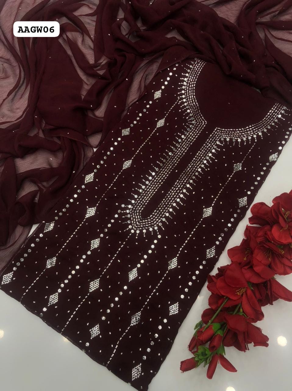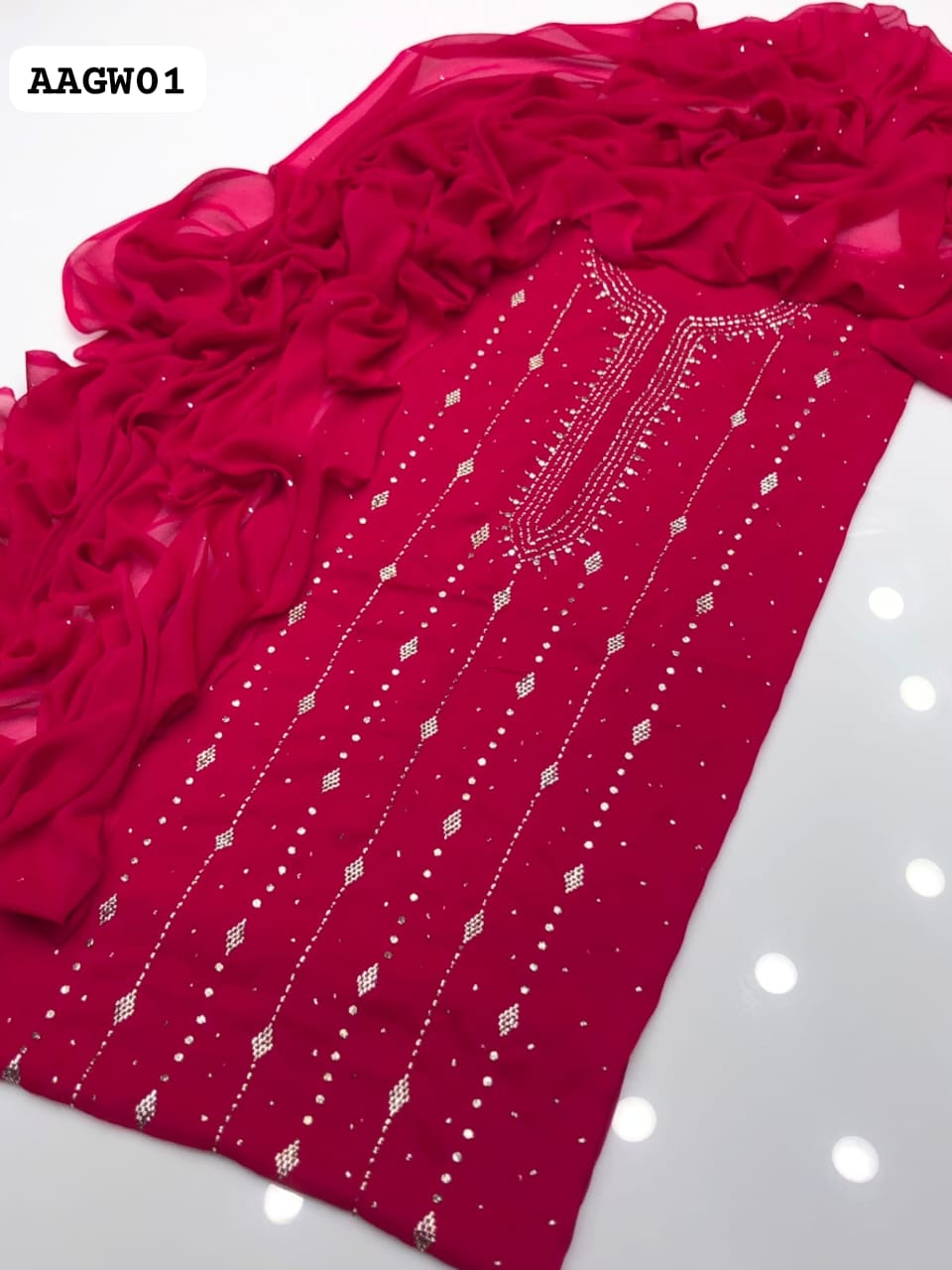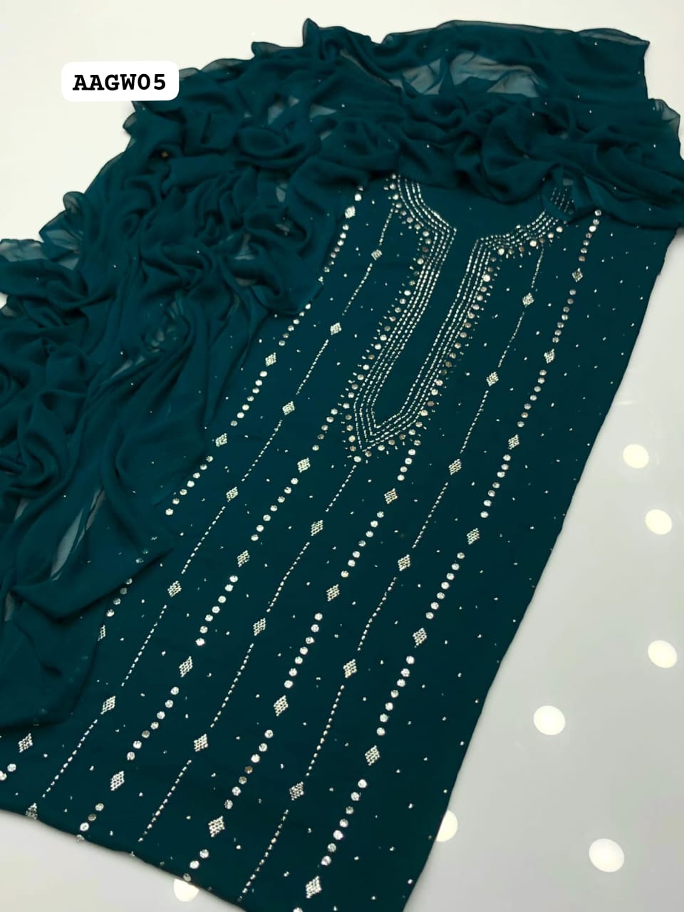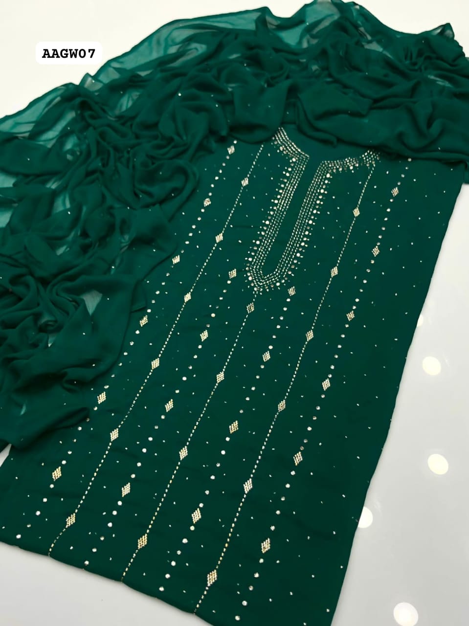 Stuff Soft Bhimber Chiffon Mukesh Kamdani Gala Fromt Heavy Work Shirt And Sleeves Mukesh Work With Bamber Chiffon Dupatta 2PC Dress