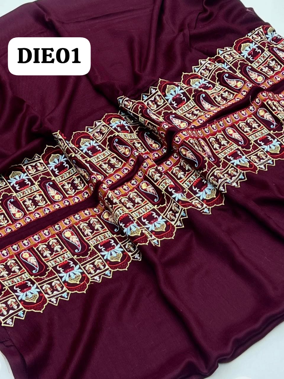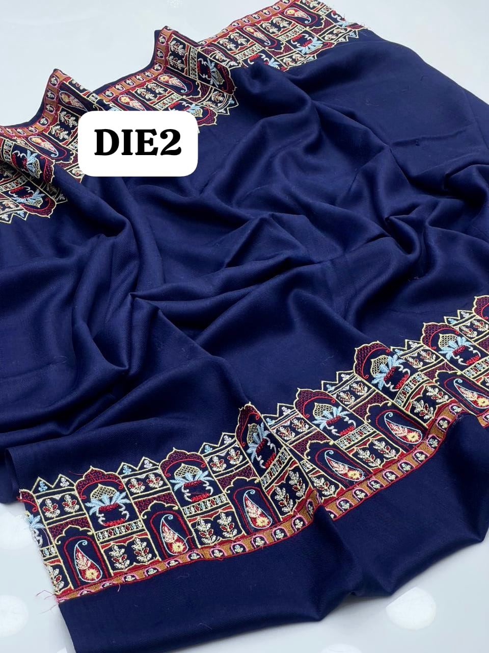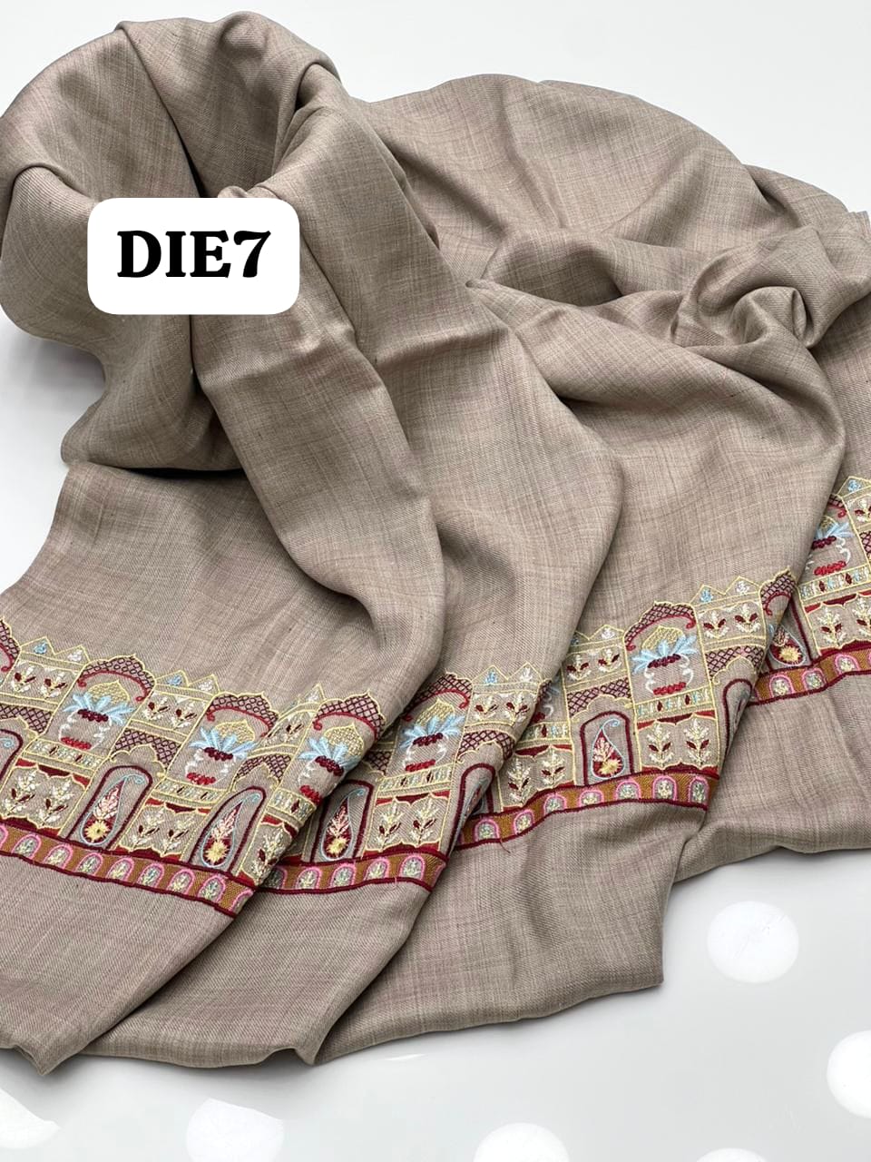 Pashmina Wool Sequence Machine Embroidery Shawl