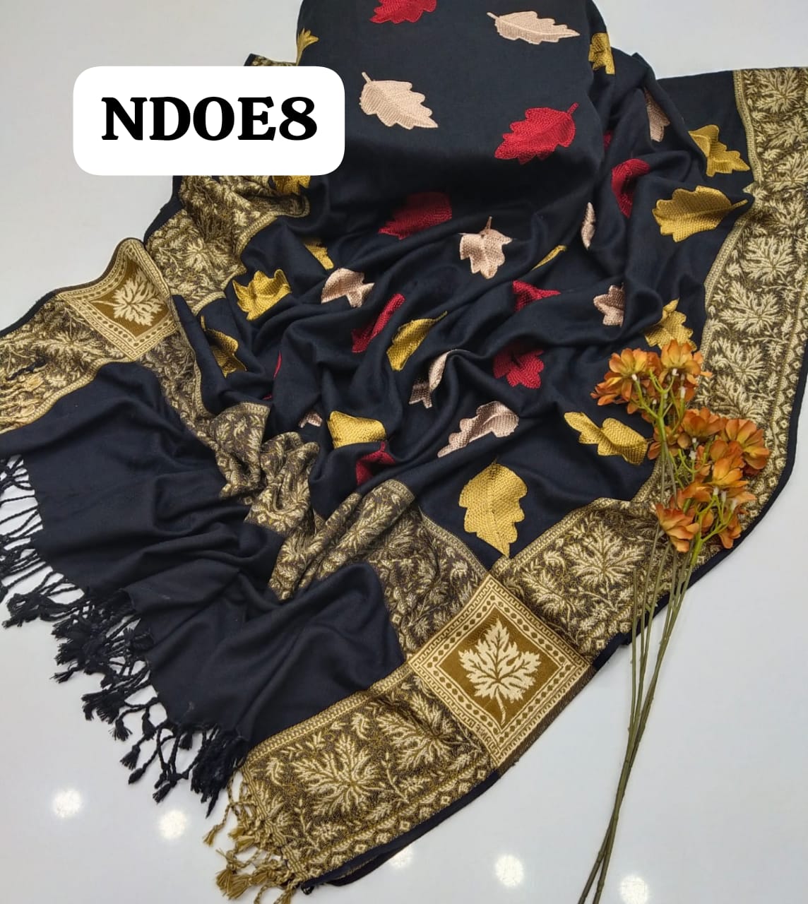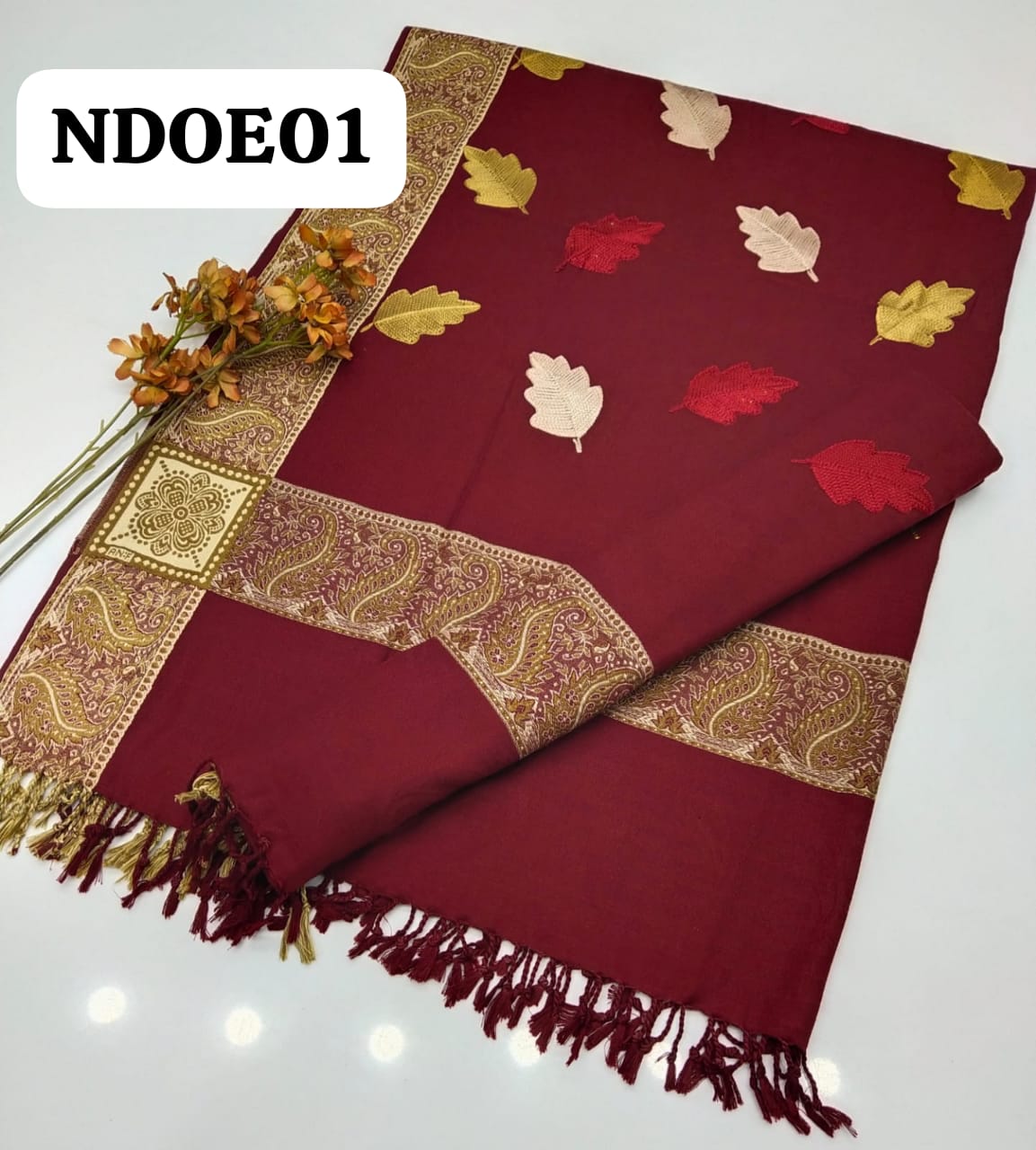 Stuff Best Quality Pure Acrylic Wool Beautiful Ladies Embroider Leaf Style Shawl
