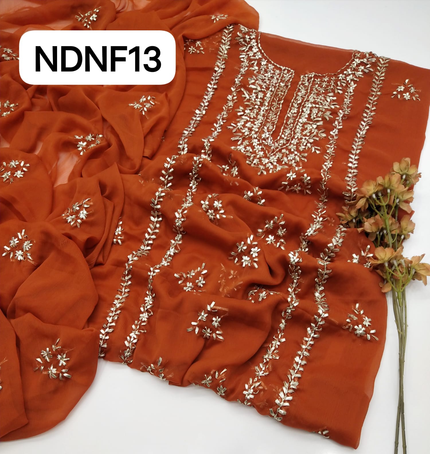 STuff Soft Bamber CHiffon Handmade LCD Gotta Embroidry Shirt And Dupatta 2PC Dress