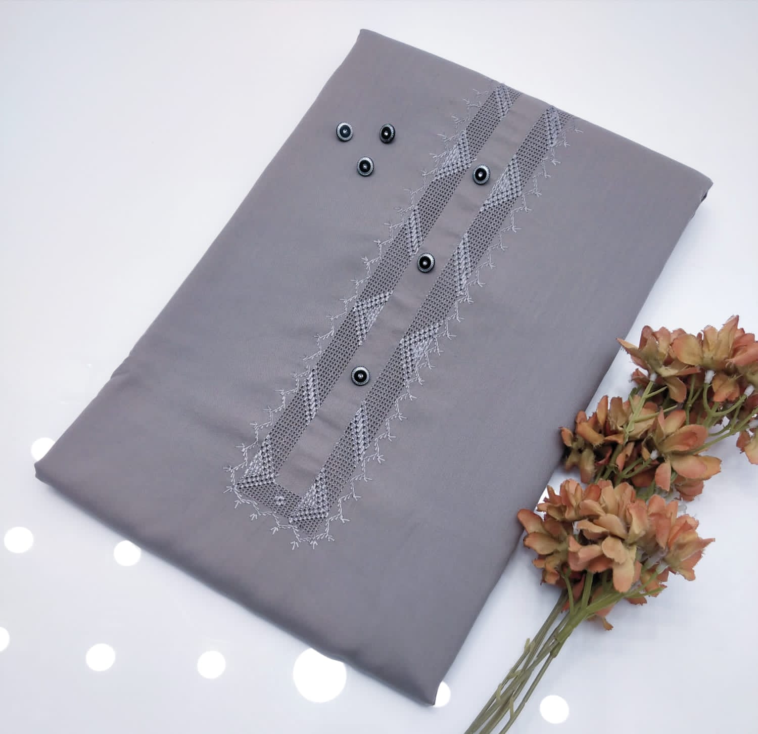 Beautiful Gents New Summer collection......Eid Arrival.... Hand Embroidery Takashi Gala Neat work Stuff soft washing wear fine Premium Quality...With 8 Button 🎁 .. Measurement 7 Meter