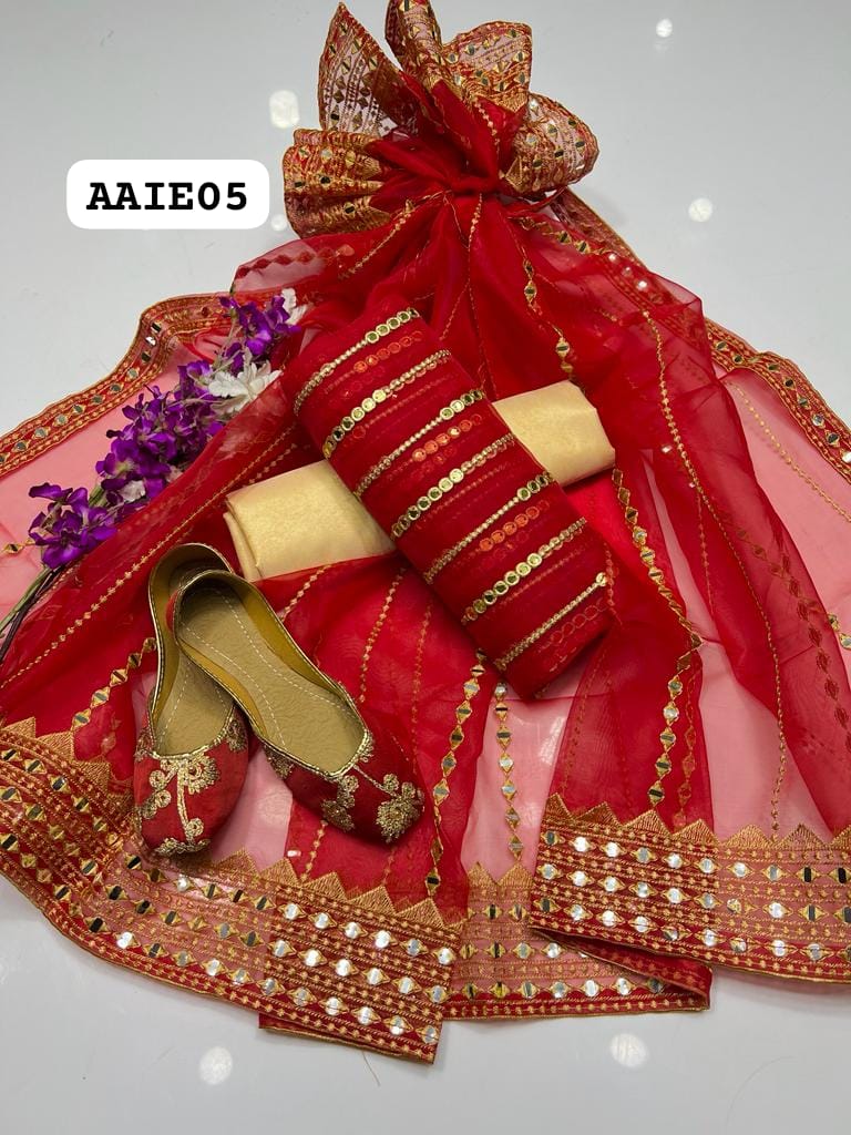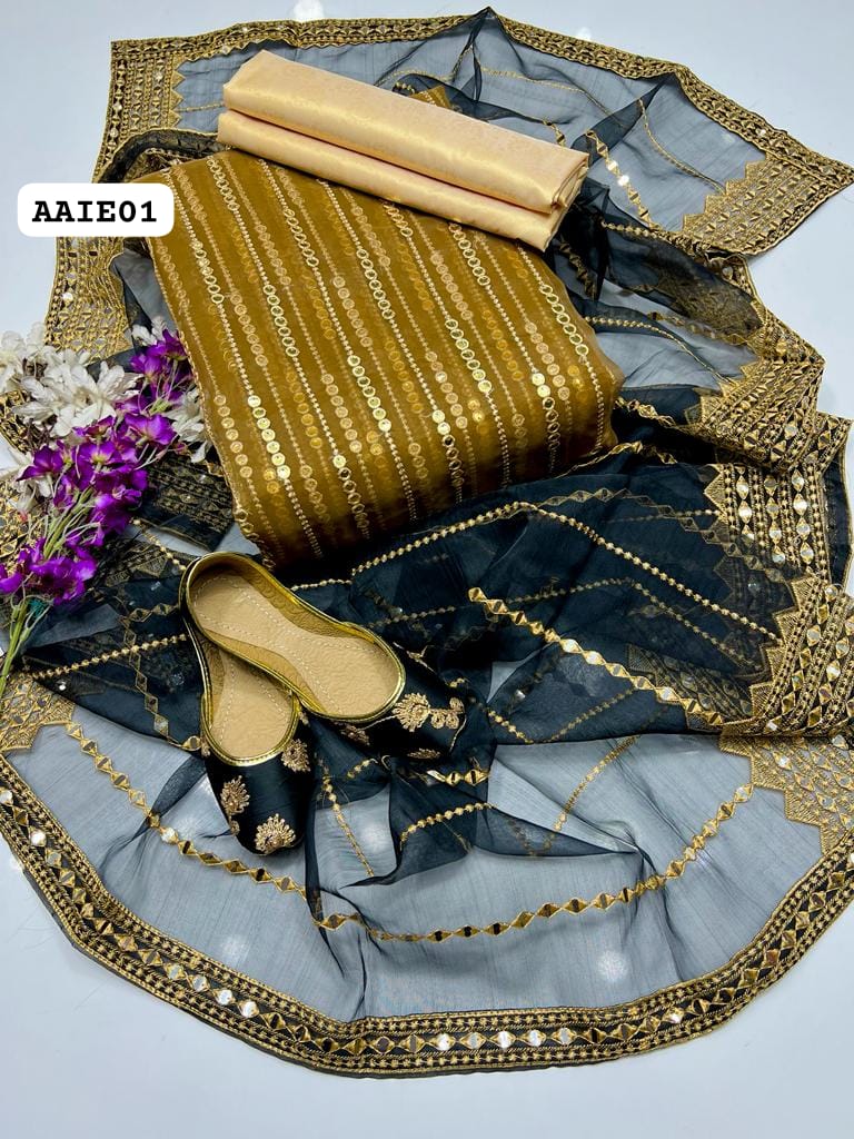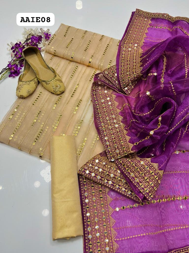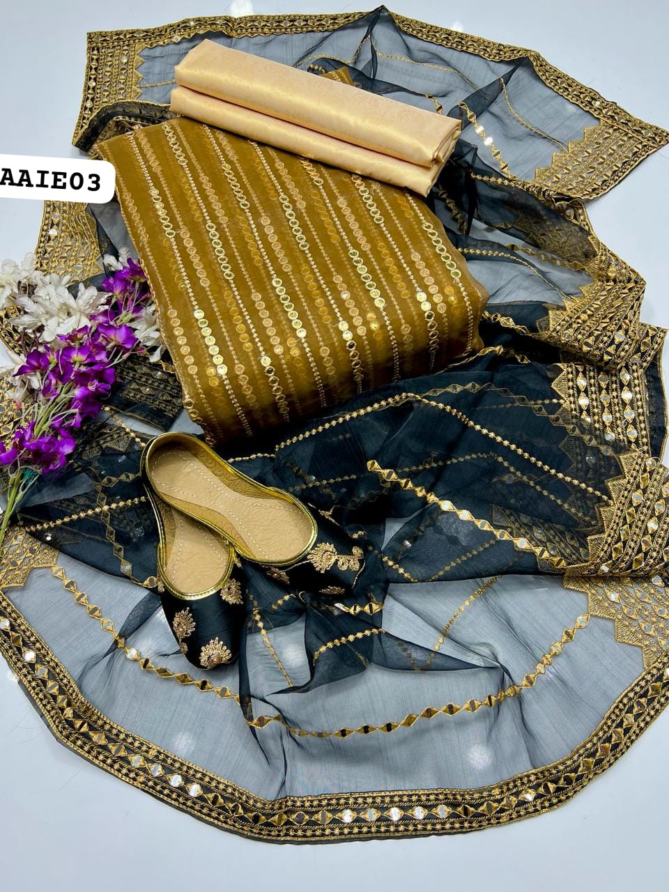 3 Meter Shirt ( Organza)2.5 Meter Dupatta(Organza))2.5 Meter Trouser ( Masoori))